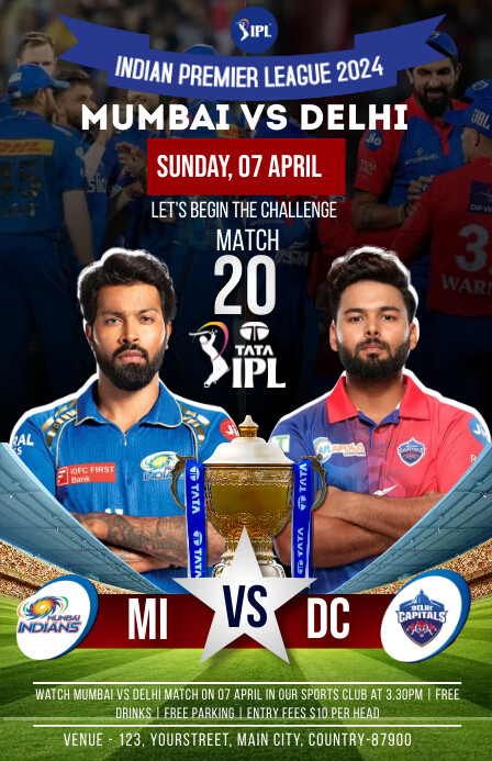 MI vs DC ipl match Poster Template Ithempulethi | PosterMyWall