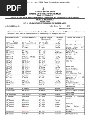 Assam Government Holiday List 2024 โ Download Official Holiday